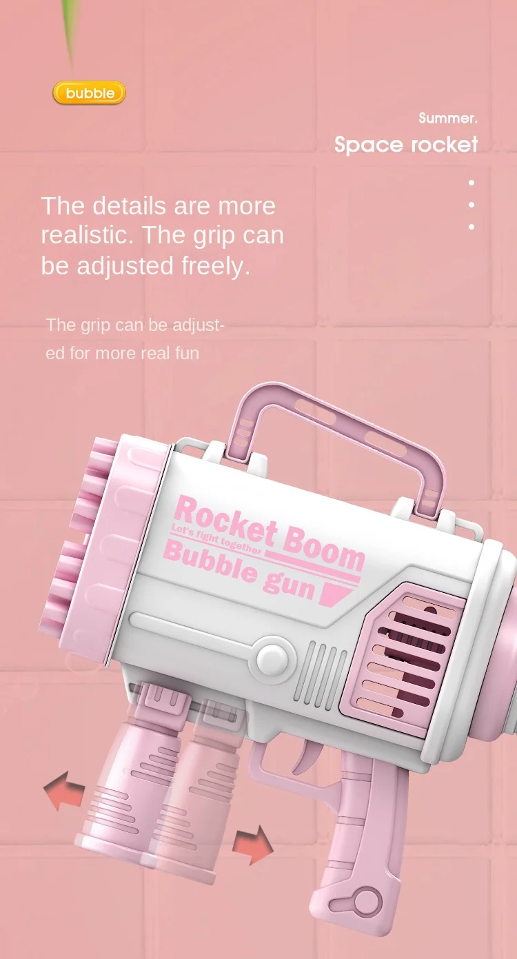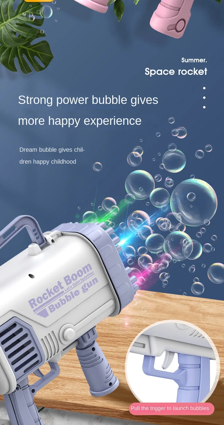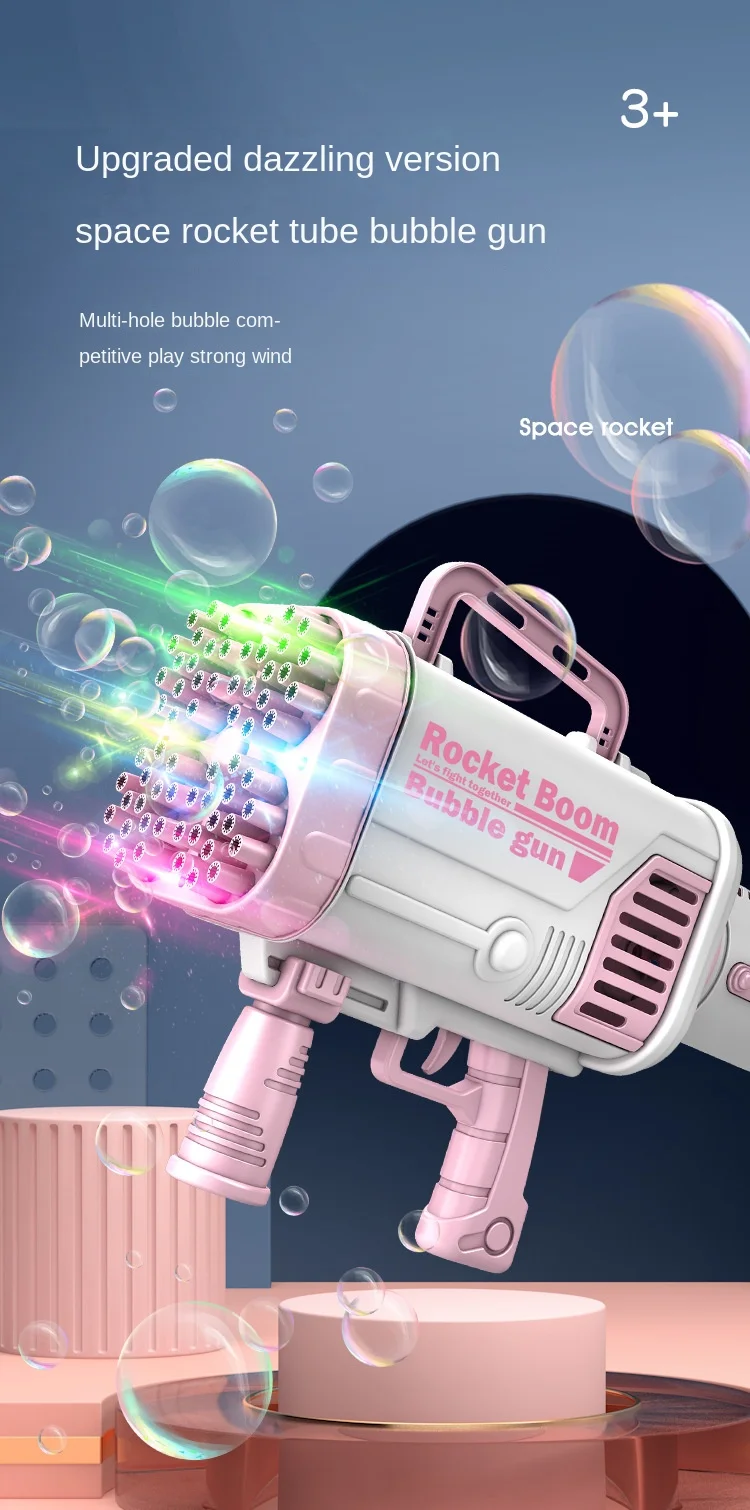 Turn any moment into a bubble-filled wonderland with this powerful 64-hole bubble blaster! Perfect for kids, parties, and endless fun.